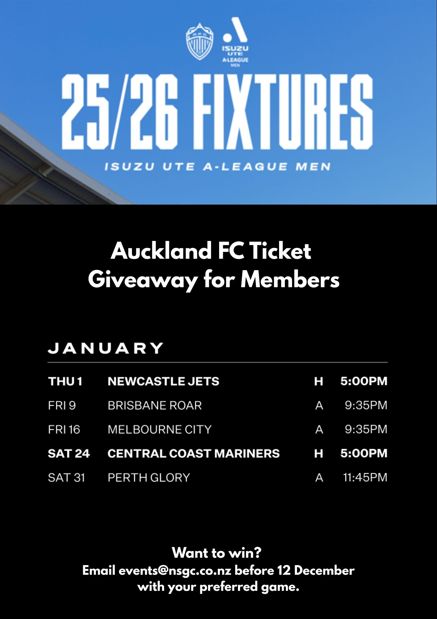 We’re now opening entries for the next round of our Auckland FC ticket giveaway. Thanks to our partnership with Auckland FC, we have more home-game tickets available for members keen to be part of the action this January.